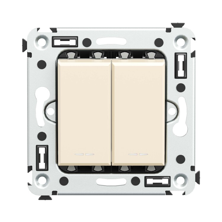 Двухклавишн ый выключатель ДКС применяется для того, чтобы из одной точки управлять двумя контурами освещения. Выключатель предназначен для скрытого монтажа в стену, номинальное напряжение – 230 В, номинальный ток – 16 А.