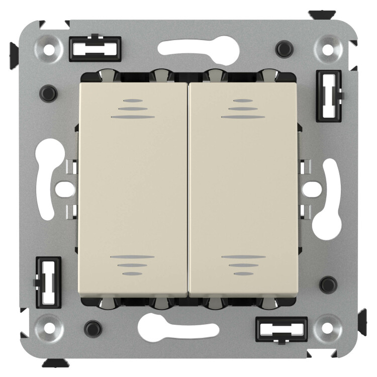 Материал: металл, термопласт. Пластиковые элементы изделия имеют цвет "Ванильная дымка" – светлый оттенок из пастельной цветовой гаммы, нежный и умиротворяющий. Он отлично сочетается с теплыми цветами. Количество модулей у устройства – 2.