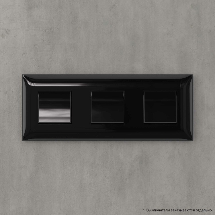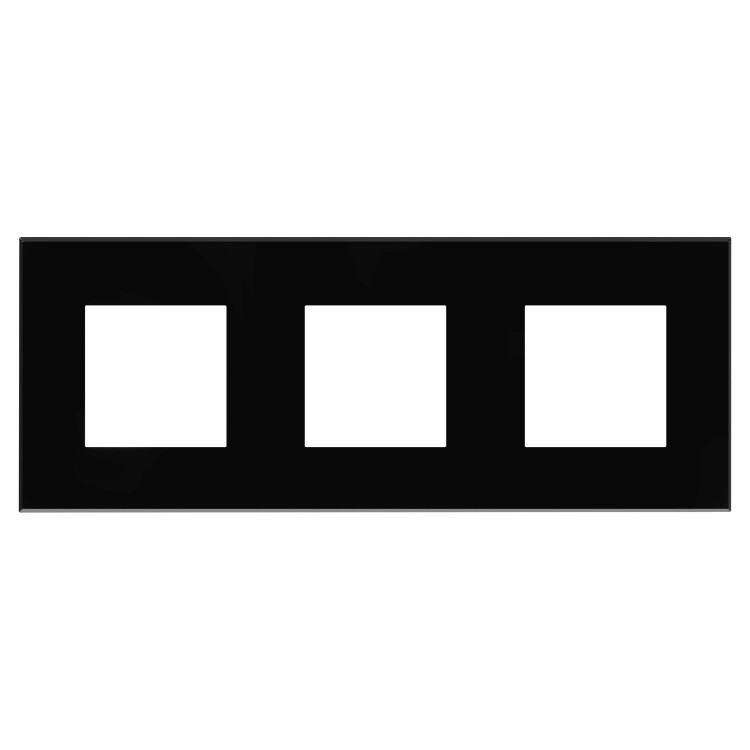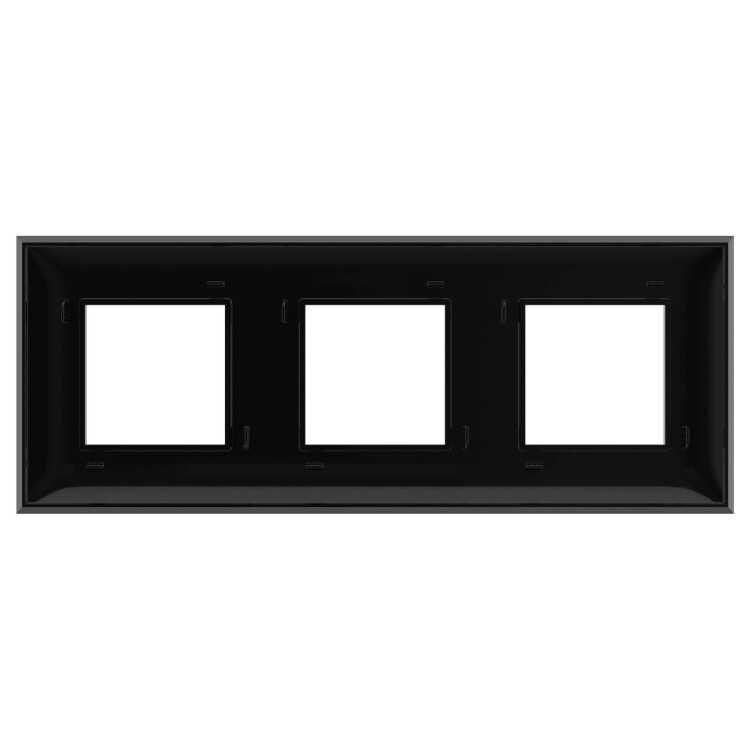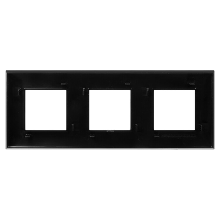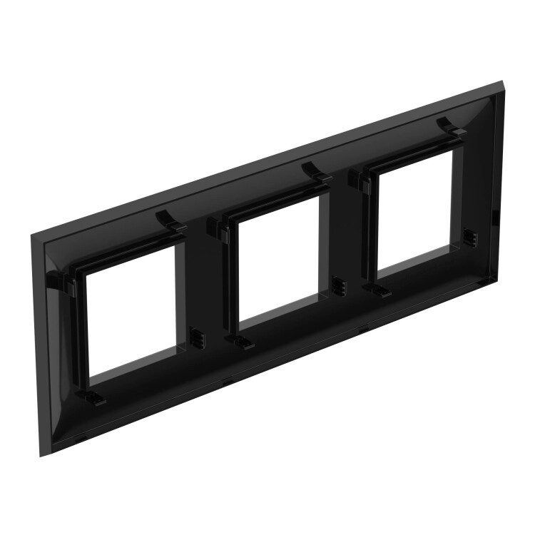 Рамка имеет 3 места под электроустановочные изделия (максимальная вместимость – 6 модулей) и может размещаться как горизонтально, так и вертикально. Габаритные размеры: 235х90 мм. Материал – термопласт.