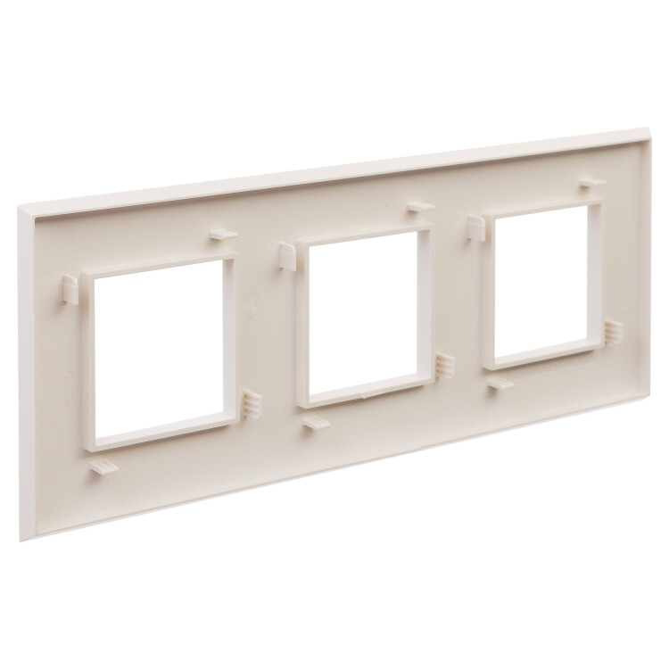 Рамка рассчитана на установку 3 ЭУИ (максимум 6 модулей). Допустимо размещать изделие как горизонтально, так и вертикально. Габаритные размеры: 235х90 мм. Материал – термопласт.