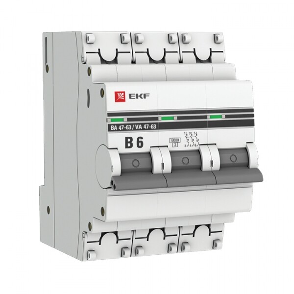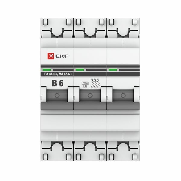 Автоматические выключатели ВА 47-63 6 кА EKF PROxima являются механическими коммутационными аппаратами и соответствуют ГОСТ Р 50345-2010. Особенностью данной серии выключателей является усовершенствованная конструкция. В выключателях имеются пластиковые крышки, закрывающие доступ к винтовому зажиму и служащие для опломбирования выключателей, что исключает несанкционированный доступ к проводникам. Корпус выключателей усилен дополнительными заклепками для устранения эффекта расхождения корпуса. Выключатели оборудованы удобной ручкой управления, обеспечивающей надежное оперирование изделиями. На лицевой панели выключателей имеется цветовой индикатор состояния. Конструкция установочного зажима обеспечивает свободную установку выключателя на DIN-рейку.