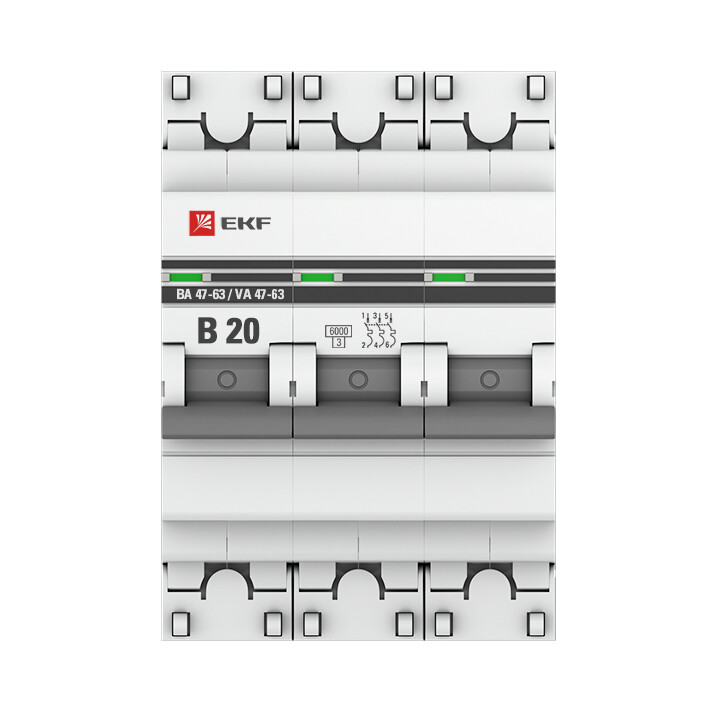 Автоматические выключатели ВА 47-63 6 кА EKF PROxima являются механическими коммутационными аппаратами и соответствуют ГОСТ Р 50345-2010. Особенностью данной серии выключателей является усовершенствованная конструкция. В выключателях имеются пластиковые крышки, закрывающие доступ к винтовому зажиму и служащие для опломбирования выключателей, что исключает несанкционированный доступ к проводникам. Корпус выключателей усилен дополнительными заклепками для устранения эффекта расхождения корпуса. Выключатели оборудованы удобной ручкой управления, обеспечивающей надежное оперирование изделиями. На лицевой панели выключателей имеется цветовой индикатор состояния. Конструкция установочного зажима обеспечивает свободную установку выключателя на DIN-рейку.