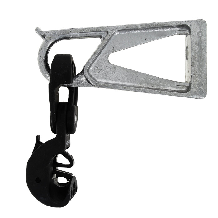 Комплект промежуточной подвески типа es-1500 предназначен для крепления изолированной несущей жилы СИП-2 на промежуточных опорах. Комплект состоит из промежуточного зажима и кронштейна. Кронштейн имеет выступ для фиксации раскаточного ролика. Монтаж осуществляется с помощью стальной бандажной ленты или болта. Комплект подвески устойчив к ультрафиолетовому и солнечному излучению, высоким и низким температурам, коррозии и агрессивным атмосферным воздействиям.