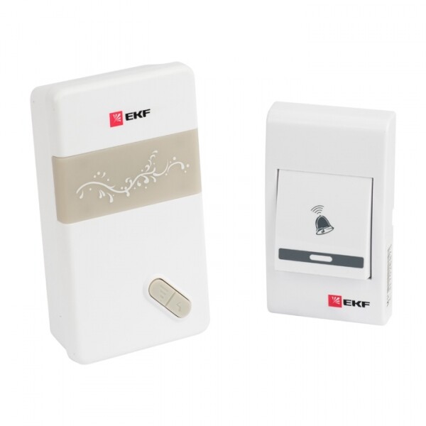 Звонок беспроводной на батарейках 002 (бел.-сер. 36 мелод. с индик. 3х1,5В ААA дист. 80м.) EKF Basic(кр.1шт)