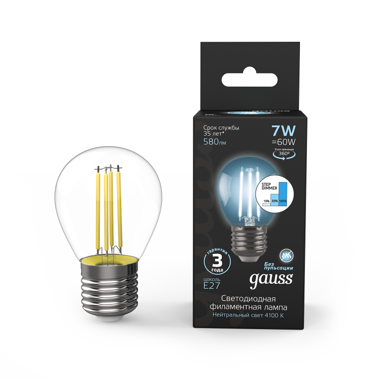 Возможность регулировки яркости ламп пользуется большим спросом в различных сферах применения. В первую очередь в сегменте HoReCa, а также в бытовом и коммерческих сегментах. В ассортименте филаментных ламп Gauss в том числе присутствуют и такие модели. Регулировка яркости ламп позволяет не только создать нужную атмосферу в помещении, но и экономить на расходе электроэнергии.