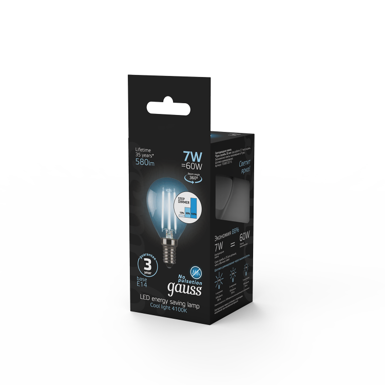 Возможность регулировки яркости ламп пользуется большим спросом в различных сферах применения. В первую очередь в сегменте HoReCa, а также в бытовом и коммерческих сегментах. В ассортименте филаментных ламп Gauss в том числе присутствуют и такие модели. Регулировка яркости ламп позволяет не только создать нужную атмосферу в помещении, но и экономить на расходе электроэнергии.