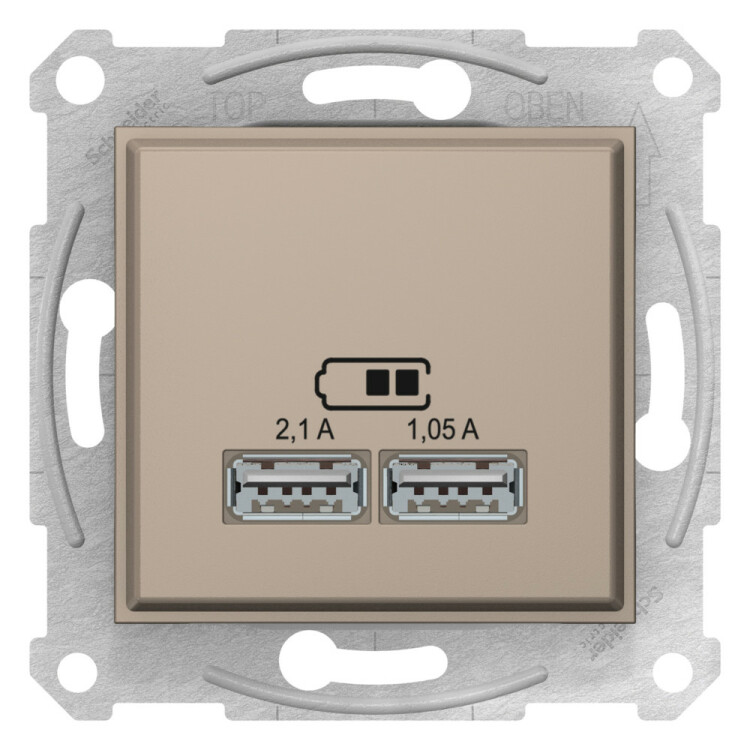 SEDNA, USB МЕХАНИЗМ зарядного устройства 2,1А (2x1,05А), ТИТАН. серия продукта: Sedna - тип устройства или его аксессуаров: USB-розетка. Преимущества: Sedna, профессиональная серия ЭУИ, которую по праву оценили электрики. Она имеет ряд преимуществ в удобстве и трудоемкости монтажа:.. применения: Гражданское и жилищное строительство..