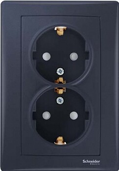 SEDNA РОЗЕТКА двойная, с зазем. конт., с защит. шторками, 16А, 250В, ГРАФИТ (кр.72шт) C3(4)