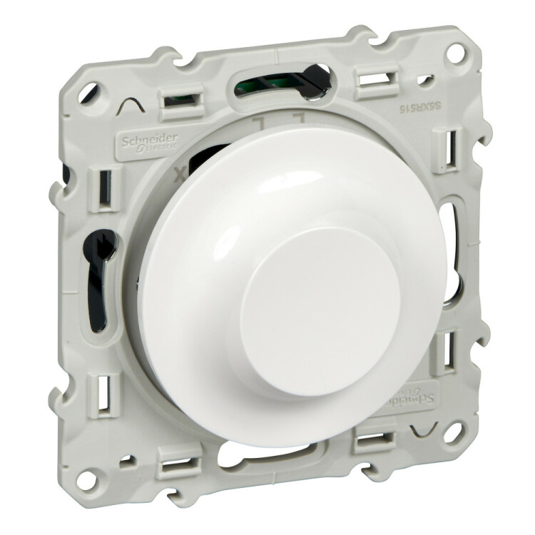 Светорегулятор Schneider Electric ODACE (цвет белый) поворотно-нажимной универсальный с винтовыми зажимами на мощность 4-400 Вт.