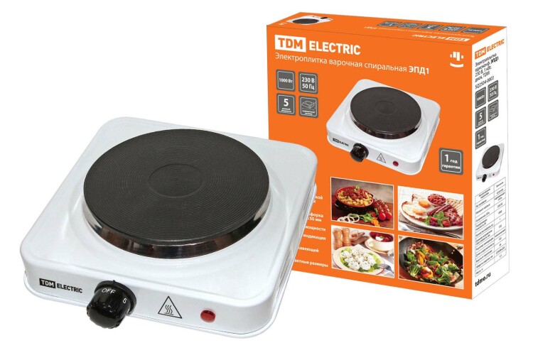 Электроплитка одноконф. ЭПД1 230 В, 1 кВт, диск, белая, TDM (кр.1шт)