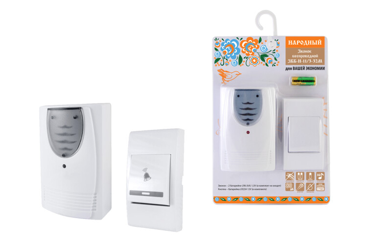 Звонок народный ЗББ-Н-11/3-32М (беспр., бат., блистер, откр.код) (кр.1шт)