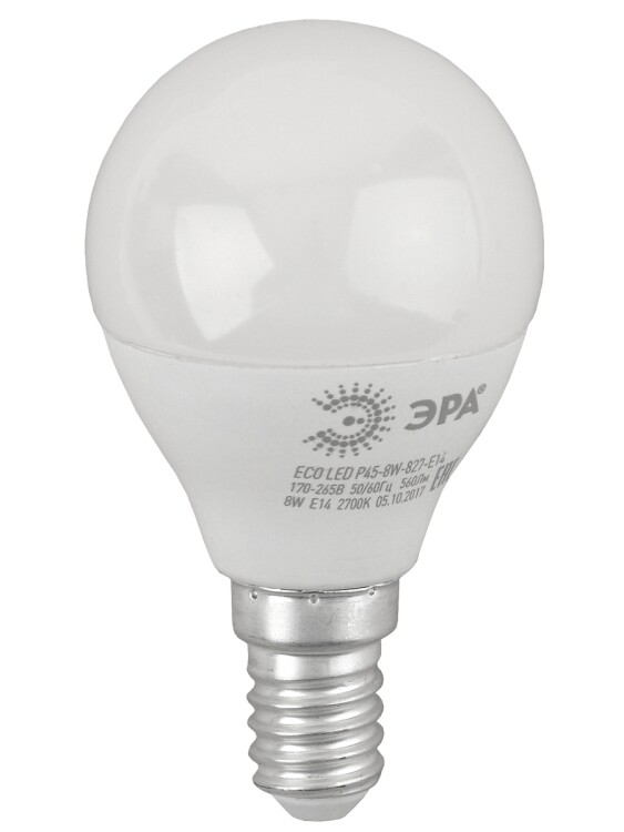 Лампочка светодиодная ЭРА RED LINE ECO LED P45-8W-827-E14 E14 / Е14 8Вт шар теплый белый свет (кр. 1шт)