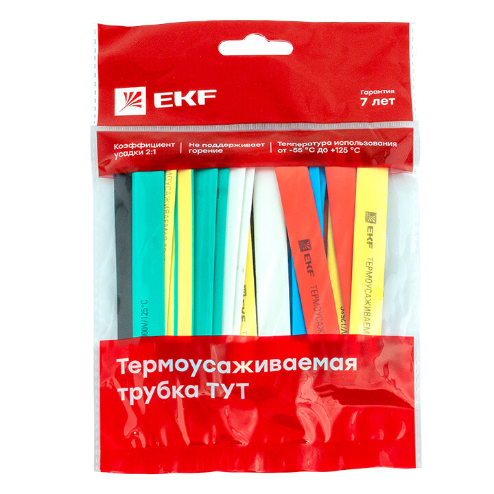 Термоусаживаемая трубка ТУТ нг 12/6 набор:7 цветов по 3шт. 100мм. EKF PROxima (кр. 1упак.)