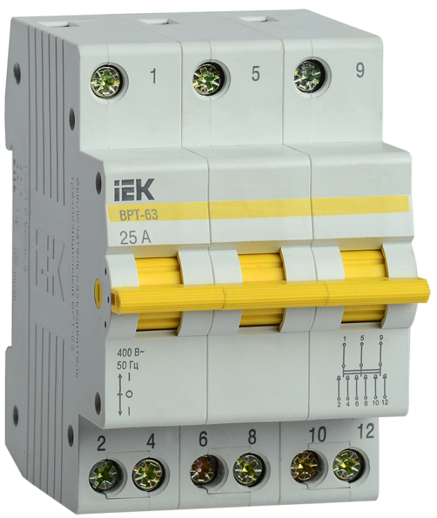 Выключатель-разъединитель трехпозиционный ВРТ-63 предназначен для коммутации смешанных активных и и ндуктивных нагрузок в цепях переменного тока напряжением до 400 В частотой 50 Гц.