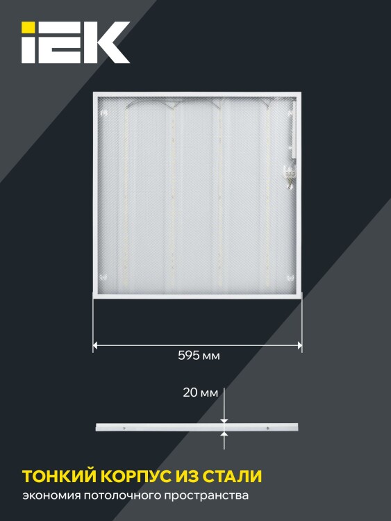 Светильник светодиодный ДВО 6572-P 45Вт 6500К 595х595х20 призма IEK (кр.4шт)