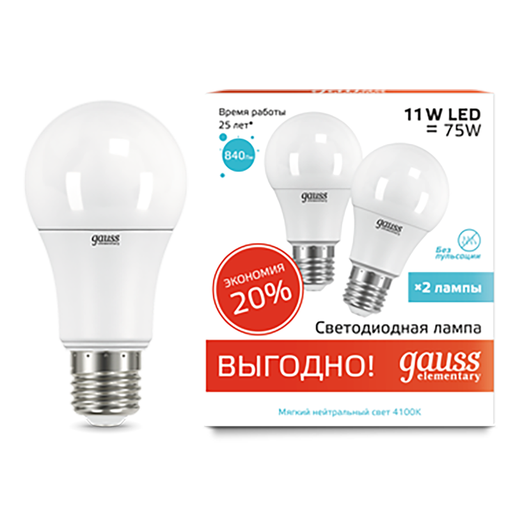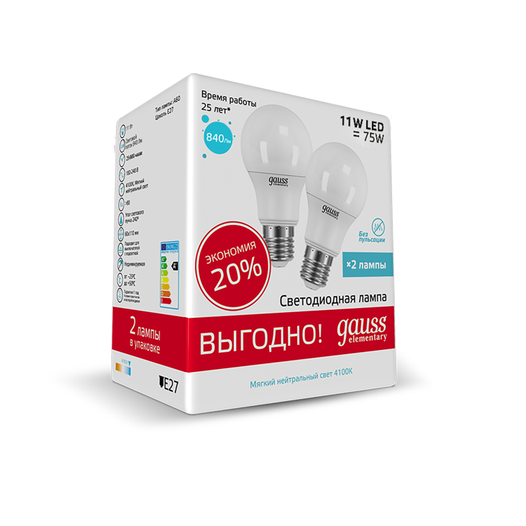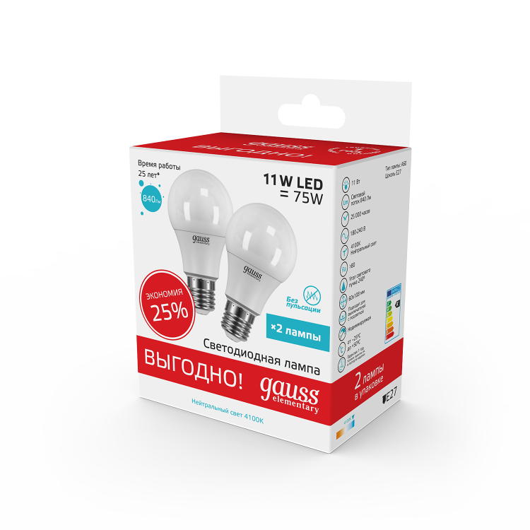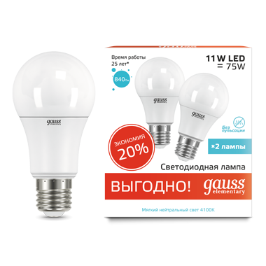 Лампа Gauss Elementary A60 являясь сочетанием простоты, эффективности и безопасности легко окажется лучшим выбором для вашего освещения.