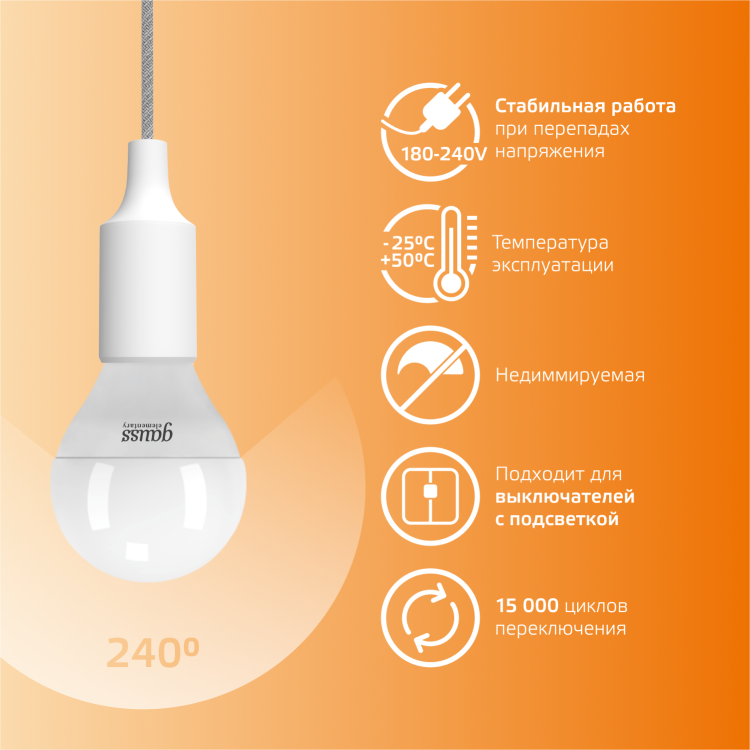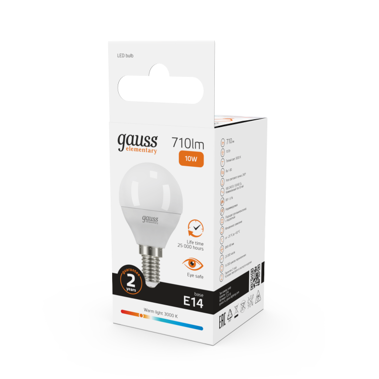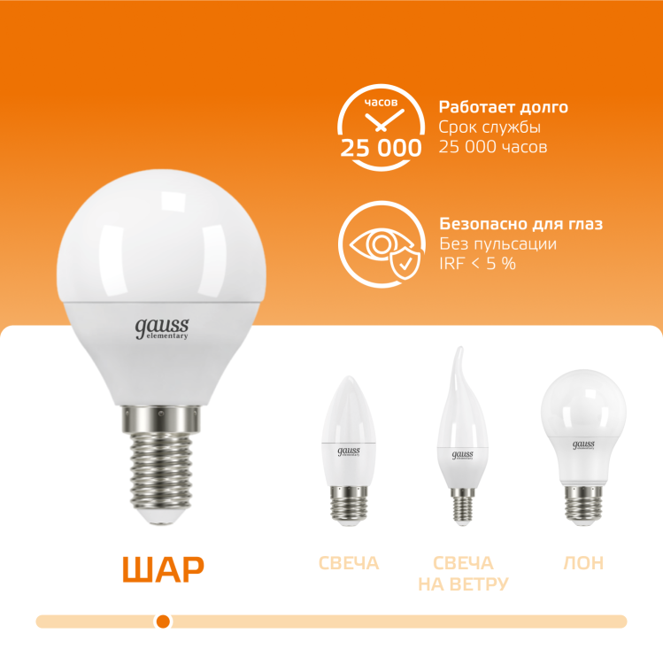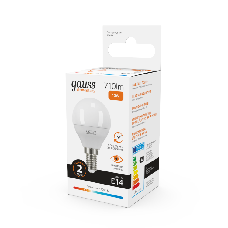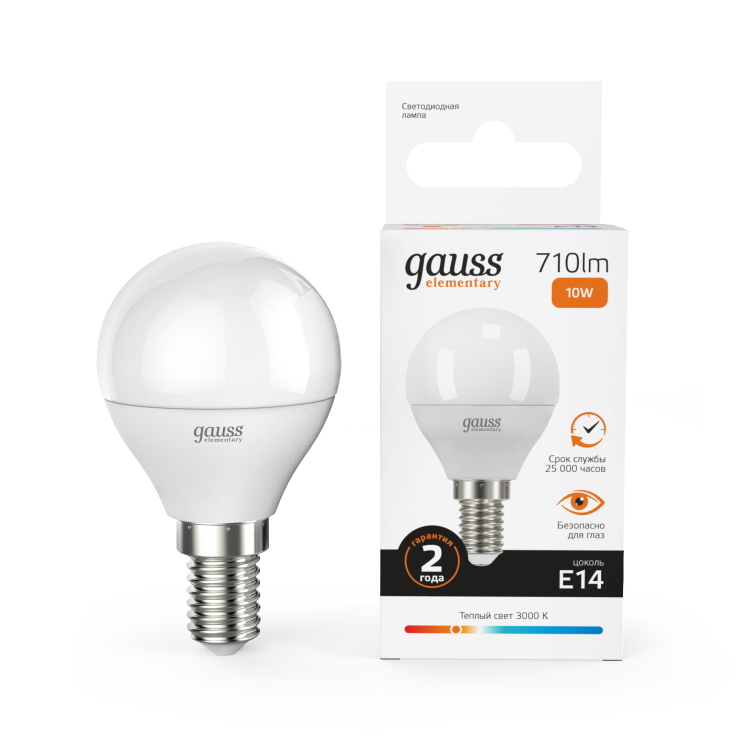 Светодиодные лампы Gauss Elementary – вечная классика, которая является энергосберегающей заменой обычным лампам накаливания. Модели представленные в ассортименте бренда обеспечивают пространство мягким не мерцающим светом и обладают всеми техническими характеристиками европейского уровня. В линейке представлены модели разных форм, высоких мощностей и размеров. Равномерное распределение света создает зрительный комфорт в любом помещении. Данная серия ламп создана для массового потребителя и имеет самое лучшее соотношение цена-качество.