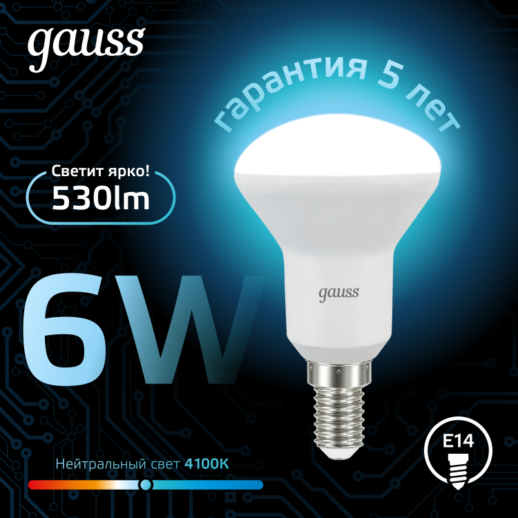 Лампа Gauss LED Reflector R50 E14 6W 4100K 1/10/100 (кр.10шт)