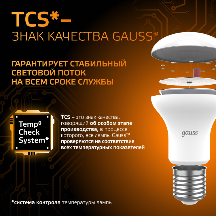 Отличная замена ламп накаливания и компактных люминесцентных ламп форм R39, R50, R63. Благодаря направленному световому пучку эти лампы помогают создать красивое, акцентное освещение. Спектр применения зеркальных ламп Gauss Black весьма широк: они прекрасно подойдут для любых типов потолков, для светильников направленного света и точечной подсветки.