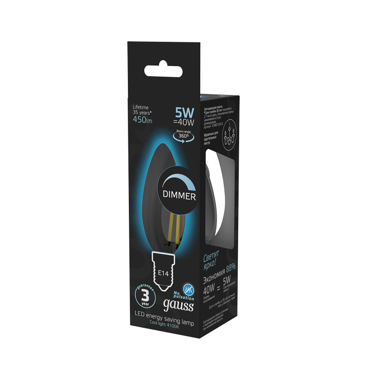 Возможность регулировки яркости ламп пользуется большим спросом в различных сферах применения. В первую очередь в сегменте HoReCa, а также в бытовом и коммерческих сегментах. В ассортименте филаментных ламп Gauss в том числе присутствуют и такие модели. Регулировка яркости ламп позволяет не только создать нужную атмосферу в помещении, но и экономить на расходе электроэнергии.