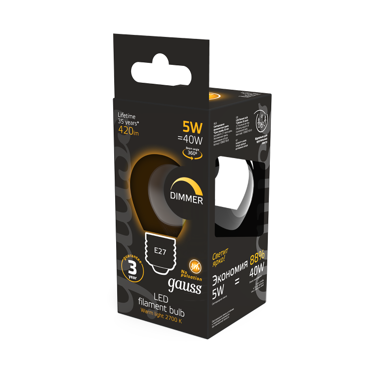 Возможность регулировки яркости ламп пользуется большим спросом в различных сферах применения. В первую очередь в сегменте HoReCa, а также в бытовом и коммерческих сегментах. В ассортименте филаментных ламп Gauss в том числе присутствуют и такие модели. Регулировка яркости ламп позволяет не только создать нужную атмосферу в помещении, но и экономить на расходе электроэнергии.