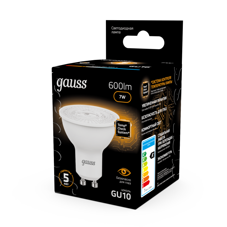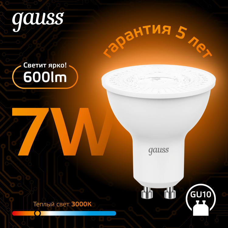 Лампа Gauss LED MR16 GU10 7W 3000K 1/10/100 (кр.10шт)