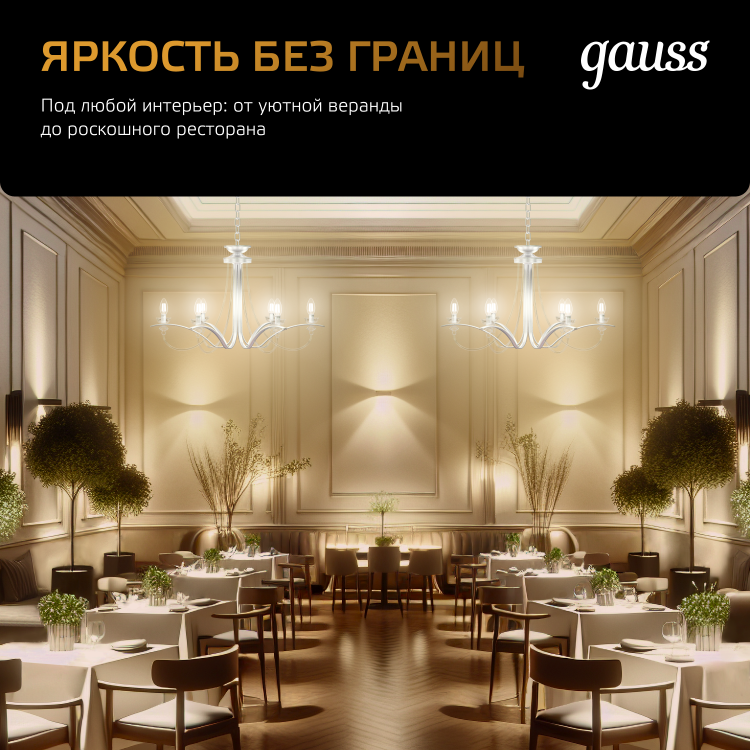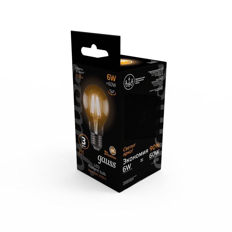 Светодиодные филаментные лампы GAUSS - это новейшие технологии в светотехнике. Лампы имеют привычный вид классических ламп накаливания, освещают пространство на 360о и дают больше света по сравнению с обычными светодиодными лампами за счет прозрачной колбы. Идеально подходят для хрустальных люстр и открытых светильников, а также для реализации дизайнерских решений, где важен вид классических ламп накаливания.