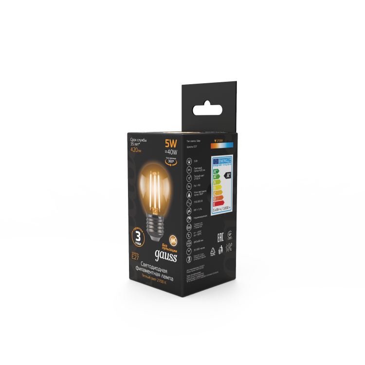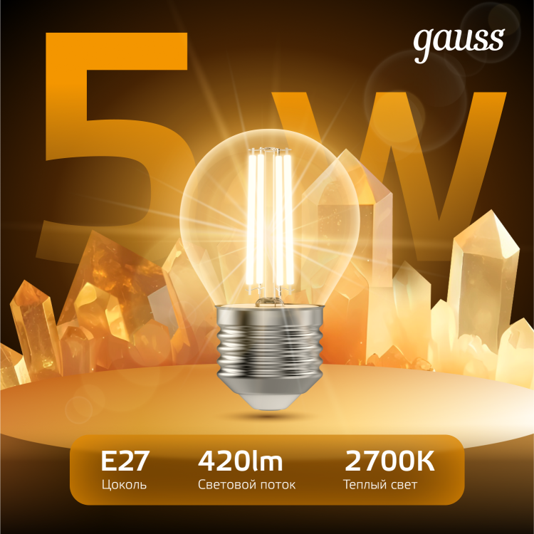 Светодиодные филаментные лампы GAUSS - это новейшие технологии в светотехнике. Лампы имеют привычный вид классических ламп накаливания, освещают пространство на 360о и дают больше света по сравнению с обычными светодиодными лампами за счет прозрачной колбы. Идеально подходят для хрустальных люстр и открытых светильников, а также для реализации дизайнерских решений, где важен вид классических ламп накаливания.