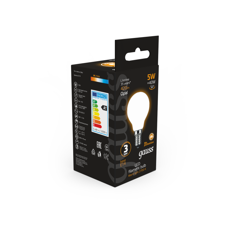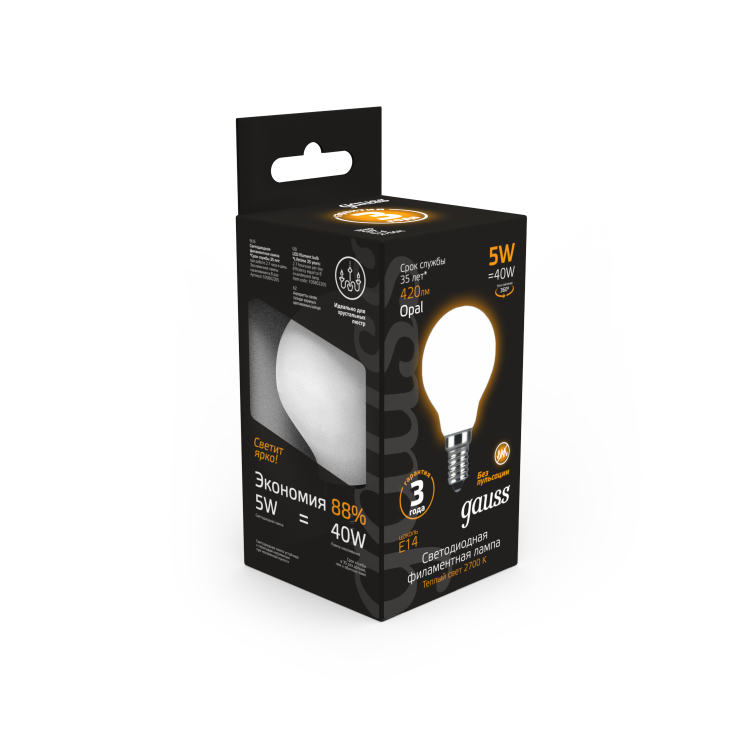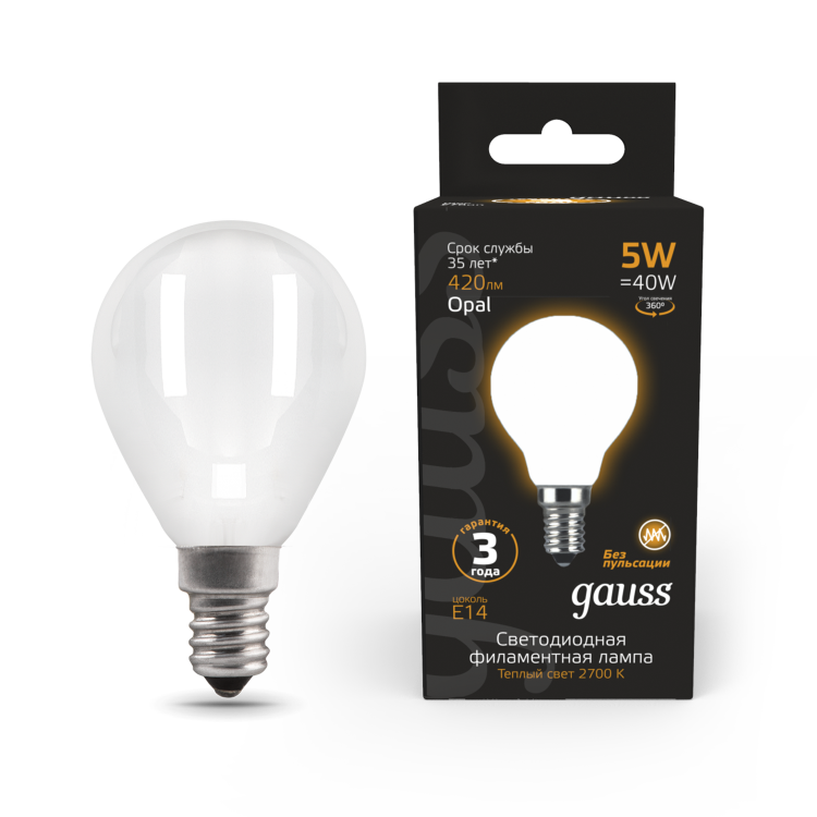 Лампа Gauss LED Filament Globe OPAL E14 5W 2700K 1/10/50 (кр.10шт)