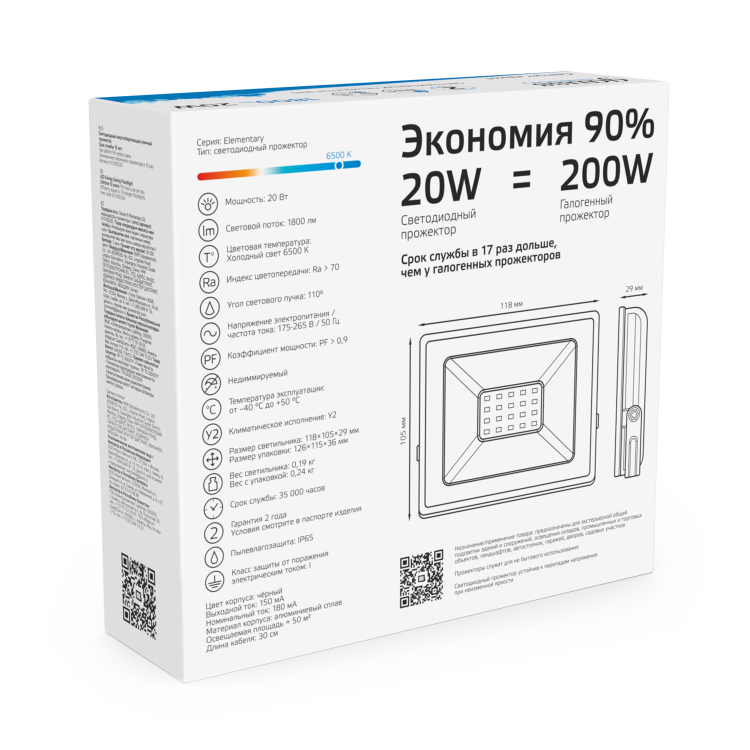 Универсальный и незаменимый прожектор Gauss Elementary созданный для экстерьерной общей подсветки зданий и сооружений, освещения складов, промышленных и торговых объектов, а также ландшафтных объектов, теперь имеет улучшенную модификацию корпуса. Корпус прожектора Qplus Elementary изготовлен из прочного литого алюминия, рассеиватель выполнен из прозрачного закаленного стекла. Экономичная LED технология сокращает до 90% затрат на электроэнергию. Использование надежного нелинейного интегрированного драйвера гарантирует работу практически в любых условиях, отсутствие электромагнитных помех и высокий коэффициент мощности более 0,9. Материалы изготовления и конструкция прожекторов Elementary обеспечивают их высокую механическую прочность и полную защиту от пыли и влаги по классу IP65.