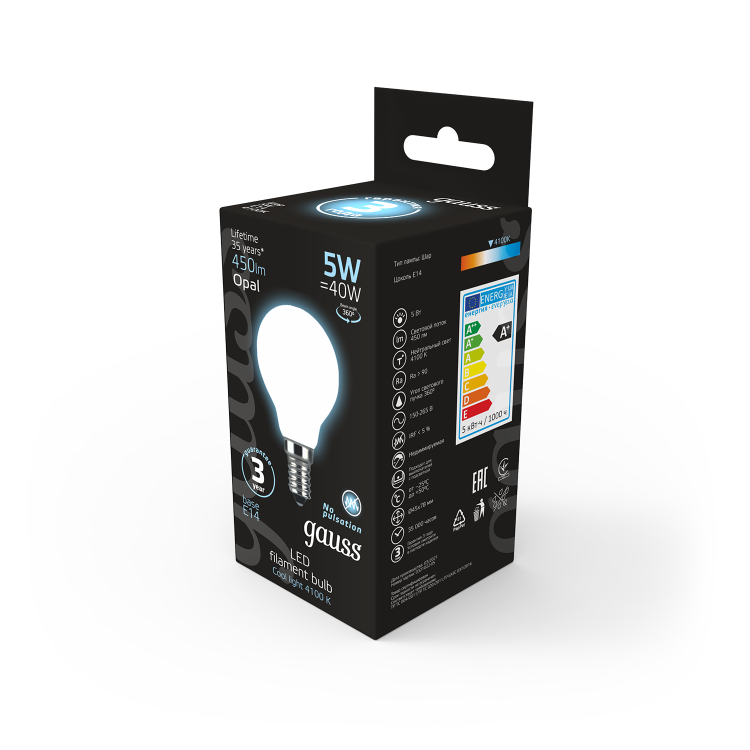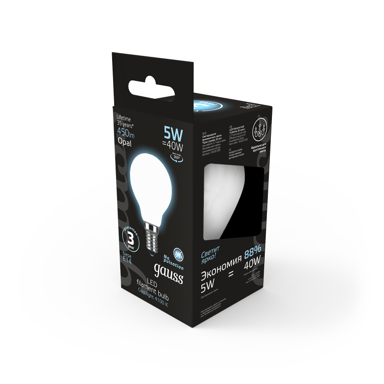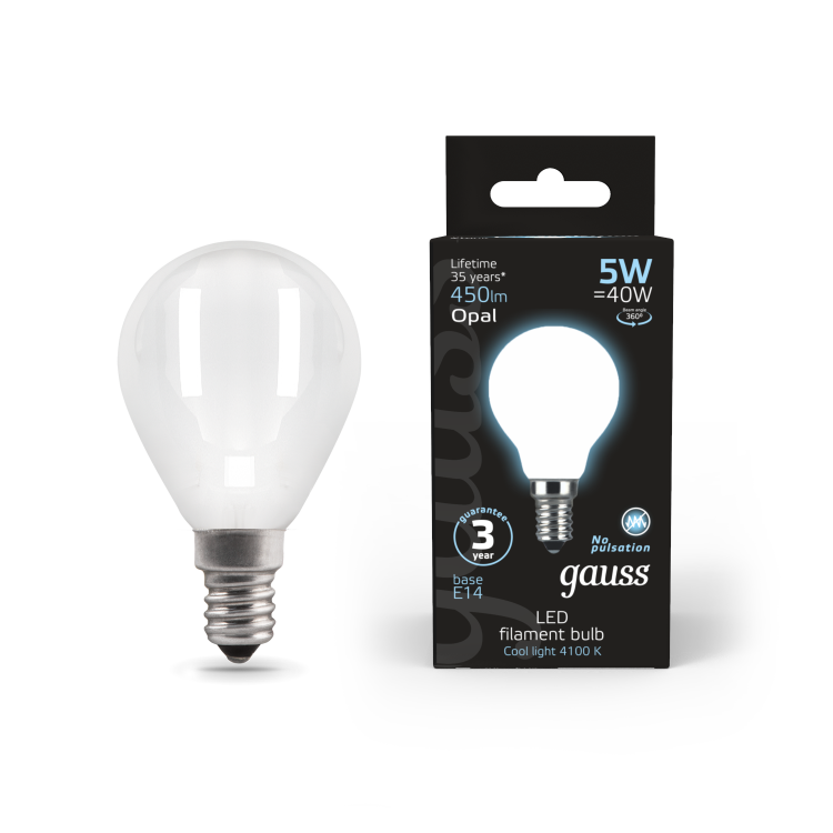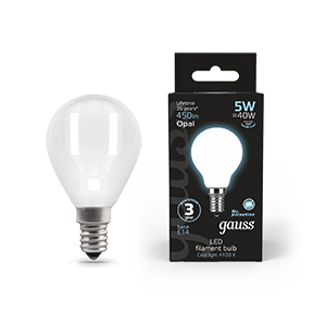 Лампа Gauss LED Filament Globe OPAL E14 5W 4100K 1/10/50 (кр.10шт)