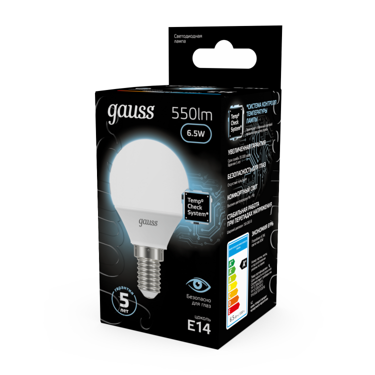 Светодиодные лампы Gauss Black в форме шара подойдут для большинства светильников, так как в категории присутствуют два вида цоколя. Светодиодные лампы Gauss Black активно используются для освещения жилых и офисных помещений. Лампы излучают приятный свет, который комфортен для глаз, без эффекта пульсации. Матовая колба ламп равномерно рассеивает свет и подходит для открытых светильников и прозрачных плафонов. Все лампы Gauss при колебаниях напряжения лампы не теряют яркость и не мерцают.