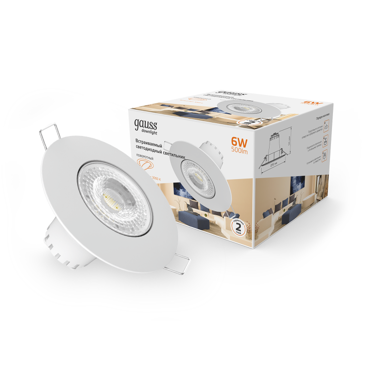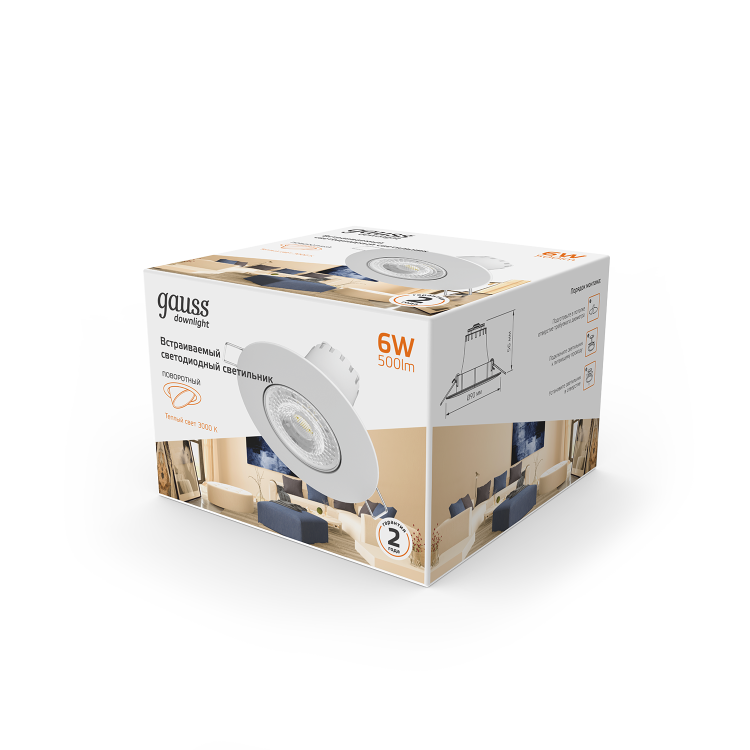 Светильник-даунлайт от Gauss это удивительное решение для создания направленного освещения. При мощности 6W его размеры составляют 90х90х56 мм, а диаметр равен 65 мм. При таких параметрах светильник обеспечивает яркость в 500 Lm и создает теплый свет с цветовой температурой 3000K благодаря использованию LED-технологии.