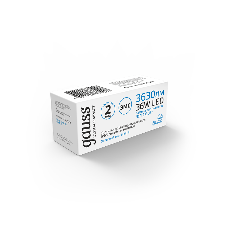 Светильник светодиодный Gauss Ultracompact IP65 предназначен для профессионального освещения производств, складов, паркингов, тепличных хозяйств, автомоек, подсобных помещений. Благодаря прочному герметичному корпусу и качественному рассеивателю, а так же уникальной возможности герметичного соединения нескольких светильников в линию может быть использован на очень больших площадях. Мощность светильника 36w с излучаемым световым потоком 3630лм холодного 6500К белого света. Рабочая температура от -40 до +45°C.