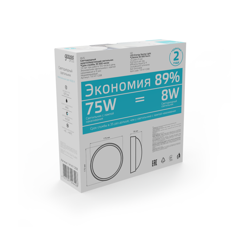 Светильники Gauss Lite предназначены для общего освещения наземных/подземных проходов, проездов, подъездов, лестничных клеток, входных групп, балконов, технических и подсобных помещений, в том числе с повышенными требованиями к пылевлагозащите до IP65. Доступны модели с оптико-акустическим датчиком.