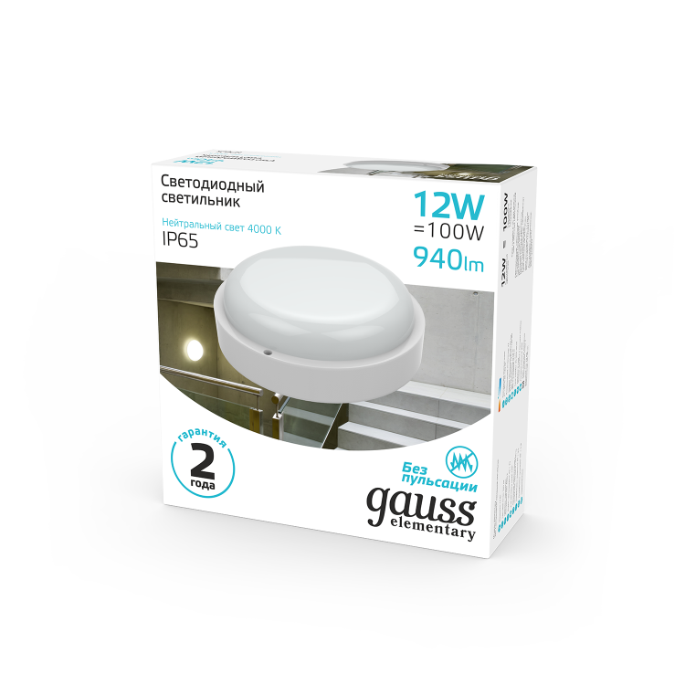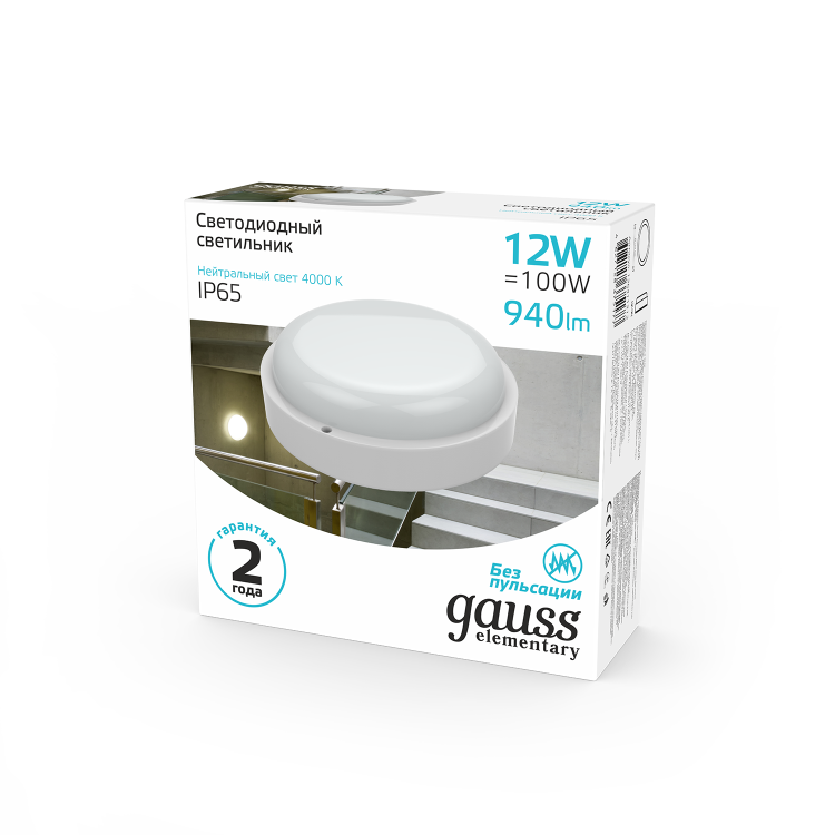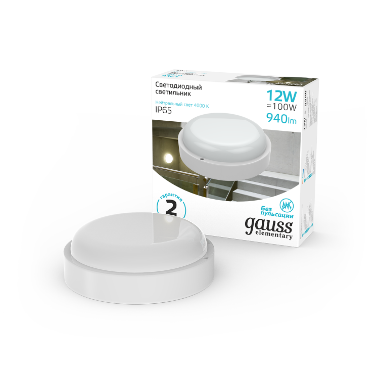 Светодиодные светильники Gauss Elementary предназначены для общего освещения наземных/подземных проходов, проездов, подъездов, лестничных клеток, входных групп, балконов, технических и подсобных помещений, в том числе, с повышенными требованиями к пылевлагозащите до IP65. В данной серии используется драйвер, обеспечивающий стабильную работу светильника при напряжении сети от 160В до 260В. Доступны модели с микроволновым датчиком движения.