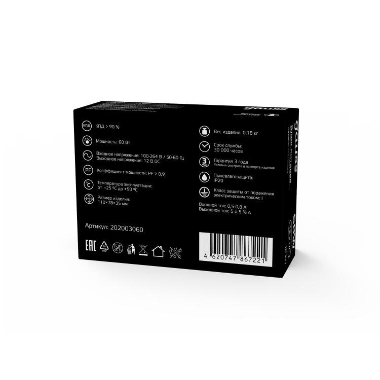 Блок питания Gauss 60W 12V IP20 1/120 имеет технические характеристики, которые гарантируют стабильность и непрерывность работы.