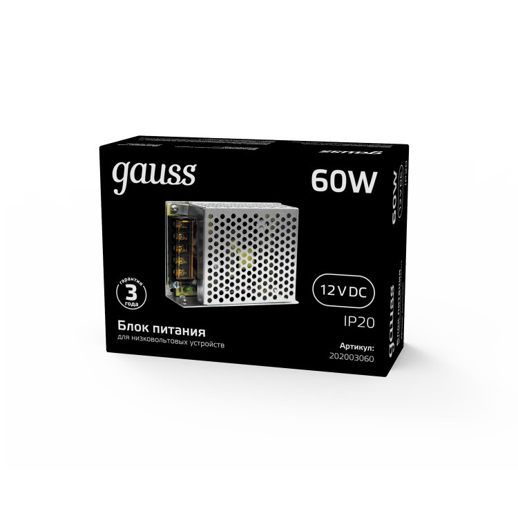 Блок питания Gauss 60W 12V IP20 1/120 - это оптимальное решение для вашей потребности в стабильном и качественном электропитании. Его высокая эффективность, надежность и удобство использования делают его незаменимым помощником в любом электронном проекте.