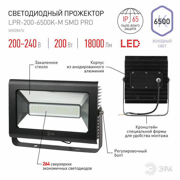 Прожектор светодиодный уличный серии PRO с высоким световым потоком -18000 Лм. Корпус -черный, изготовлен из прочного алюминия, стекло закаленное. Экономичная LED-технология сократит до 90% затрат на электроэнергию. Прожектор устойчив к механическим воздействиям, защищен от дождя и пыли, работает при широком диапазоне температур (от -45 до +45). Отличается простой и быстрой установкой: есть кронштейн специальной формы и регулировочные болты для выбора направления света. Подходит как для внутреннего, так и для наружного применения.0 Пульсация.