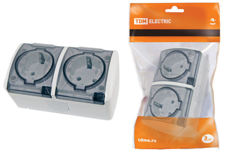 Розетка двойная 2П+3 открытой установки IP54 16А с прозрачной крышкой белая "Селигер" TDM (кр.5шт
