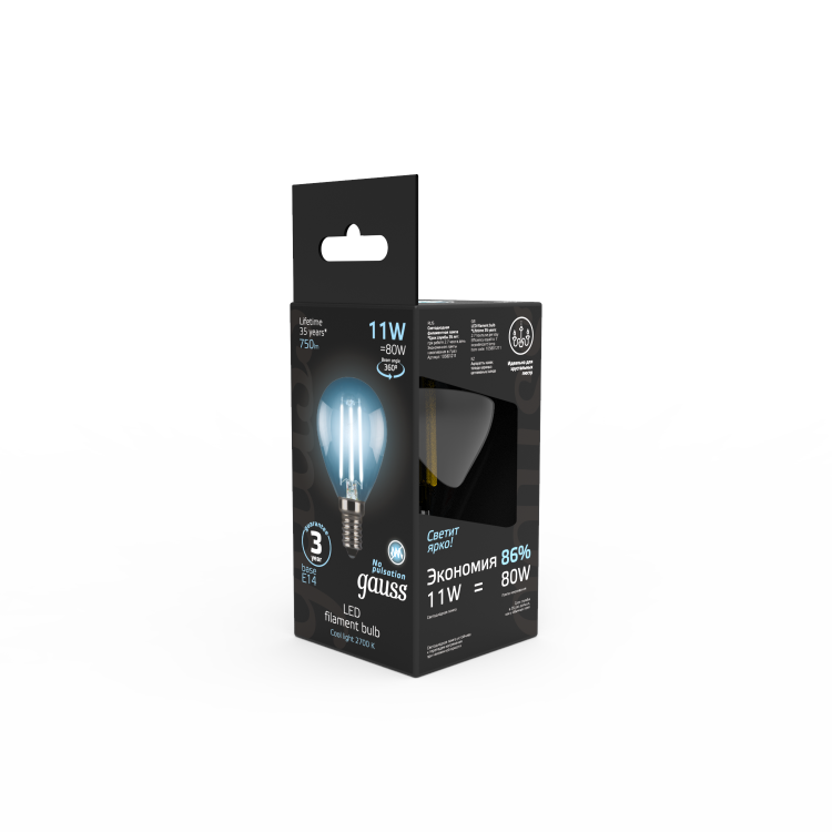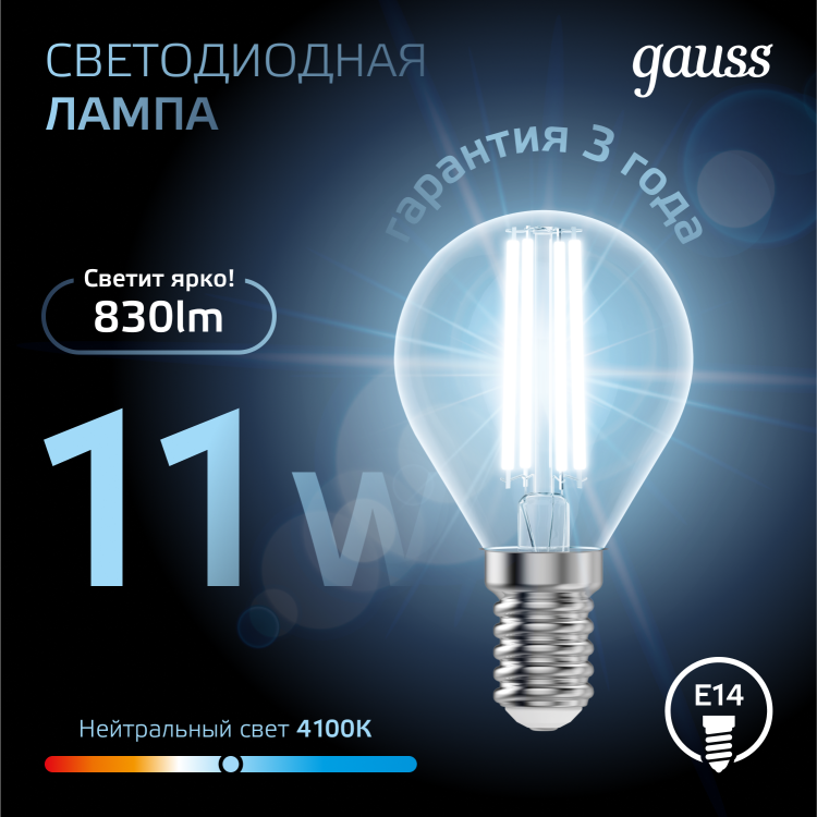 Светодиодные филаментные лампы GAUSS - это новейшие технологии в светотехнике. Лампы имеют привычный вид классических ламп накаливания, освещают пространство на 360о и дают больше света по сравнению с обычными светодиодными лампами за счет прозрачной колбы. Идеально подходят для хрустальных люстр и открытых светильников, а также для реализации дизайнерских решений, где важен вид классических ламп накаливания.