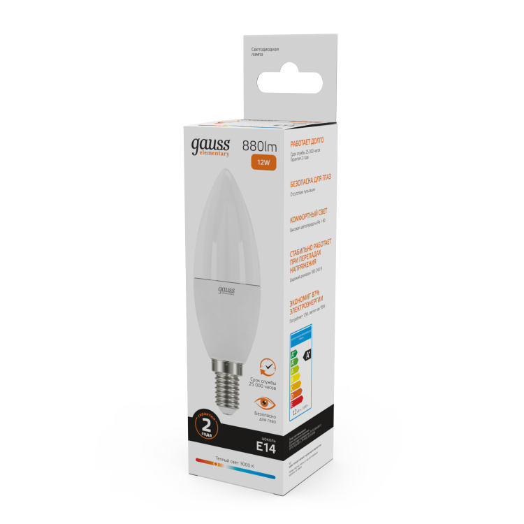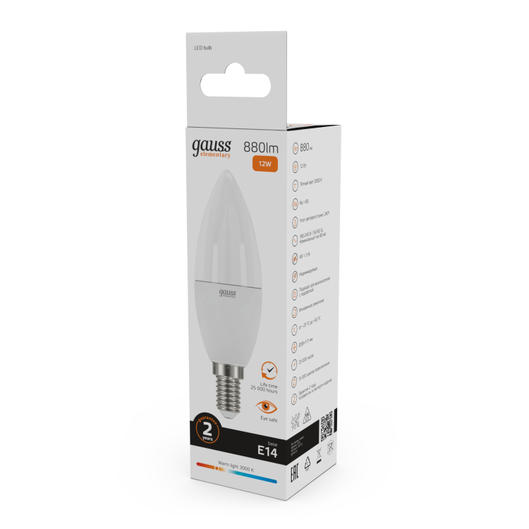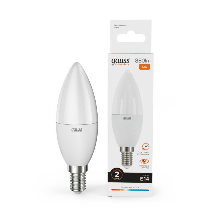 Лампа Gauss LED Elementary Свеча 12W 880lm E14 3000K 1/10/100