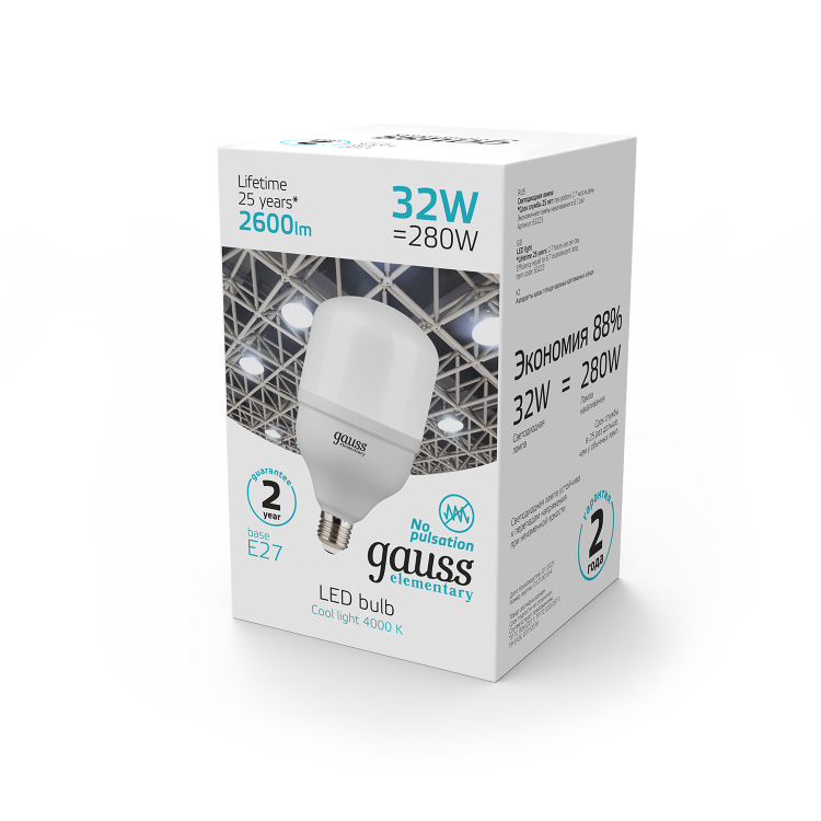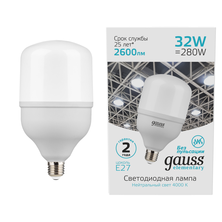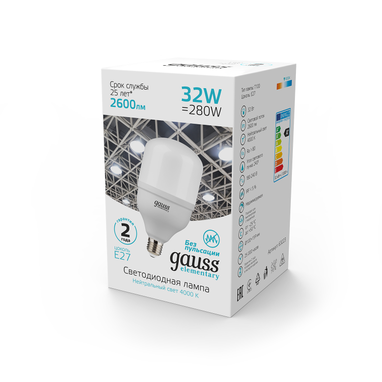 Светодиодные лампы высокой мощности в основном используются в освещении помещений большой площади и высокими потолками (от 3,5 метров), а также уличных системах освещения. Высокая мощность и большой световой поток при минимальном энергопотреблении - Gauss Т100-Т160
