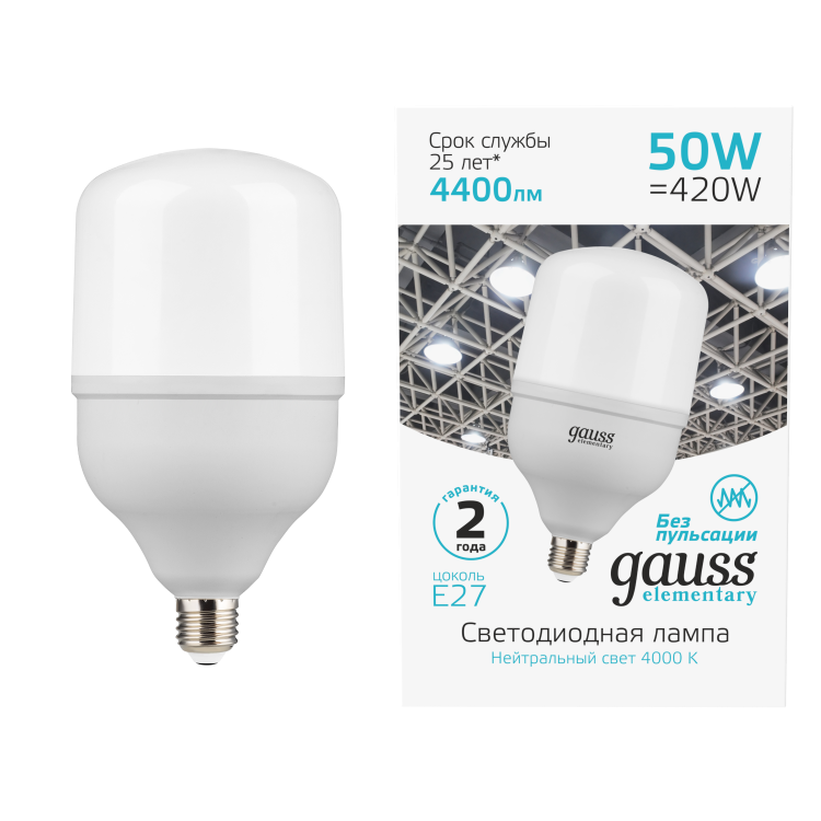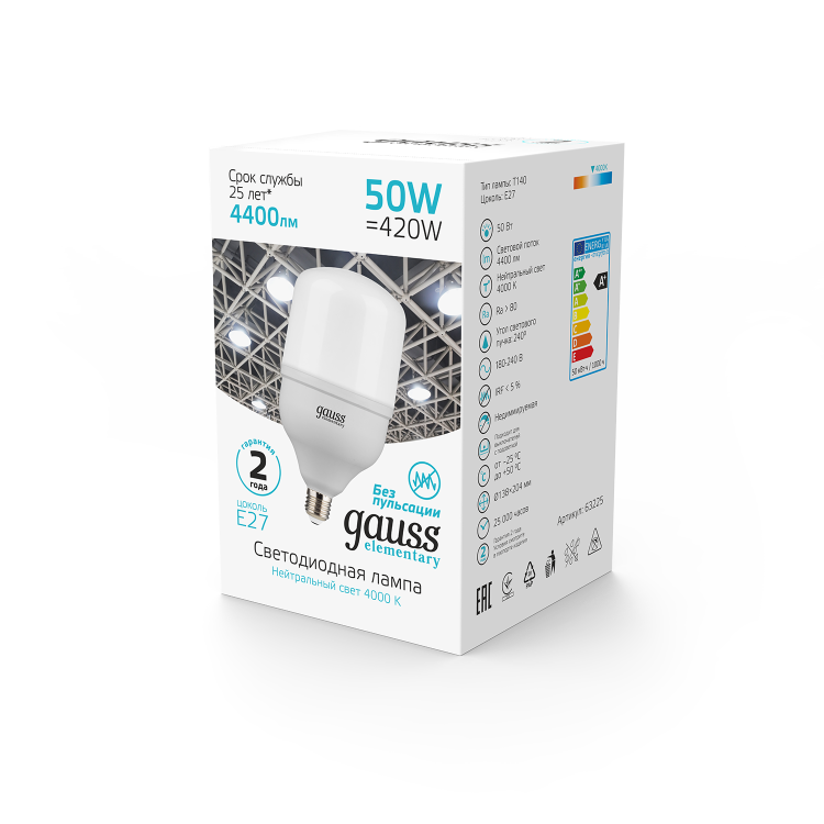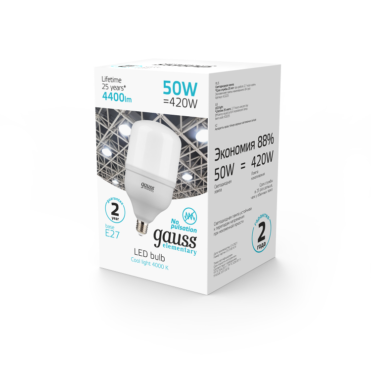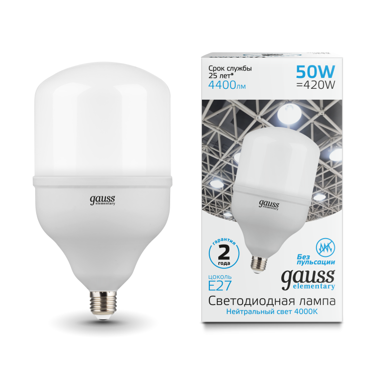 Светодиодные лампы высокой мощности в основном используются в освещении помещений большой площади и высокими потолками (от 3,5 метров), а также уличных системах освещения. Высокая мощность и большой световой поток при минимальном энергопотреблении - Gauss Т100-Т160