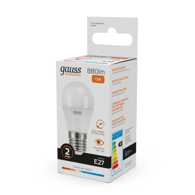 Лампы Gauss Elementary являются универсальными источниками света для любого типа помещений. Матовая колба ламп равномерно рассеивает свет и подходит для открытых светильников и прозрачных плафонов. За счет высокого индекса цветопередачи пространство будет наполнено приятным, мягкий светом, не слепящим глаза. В случае перебоя напряжений лампы не потеряют яркость и не будут мерцать.