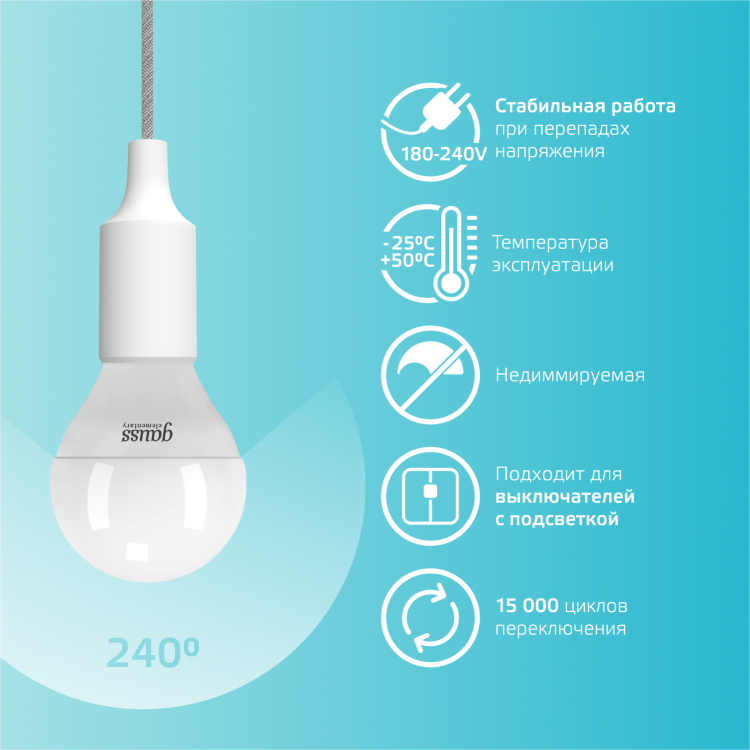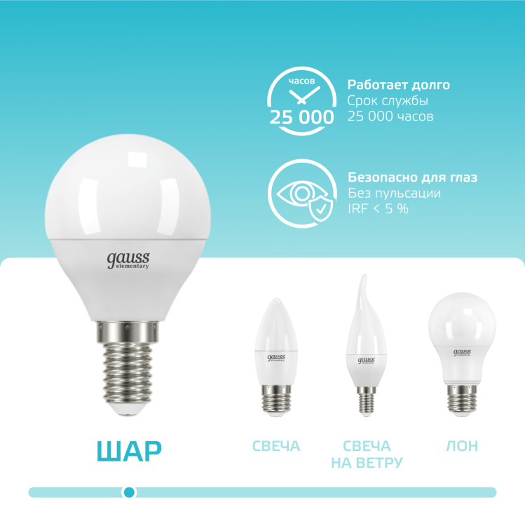 Светодиодные лампы Gauss Elementary – вечная классика, которая является энергосберегающей заменой обычным лампам накаливания. Модели представленные в ассортименте бренда обеспечивают пространство мягким не мерцающим светом и обладают всеми техническими характеристиками европейского уровня. В линейке представлены модели разных форм, высоких мощностей и размеров. Равномерное распределение света создает зрительный комфорт в любом помещении. Данная серия ламп создана для массового потребителя и имеет самое лучшее соотношение цена-качество.