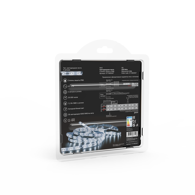 GAUSS Black прекрасный выбор для подсветки потолков, рабочих зон на кухне и витрин. Лента выпускается на гибкой печатной плате, а на обратной стороне используется двусторонний скотч, обеспечивающий надежное крепление ленты. В ассортименте присутствует лента теплого, холодного и RGB свечения со степенью защиты IP20 и IP66. Лента серии Black имеет увеличенный срок службы 35000 часов