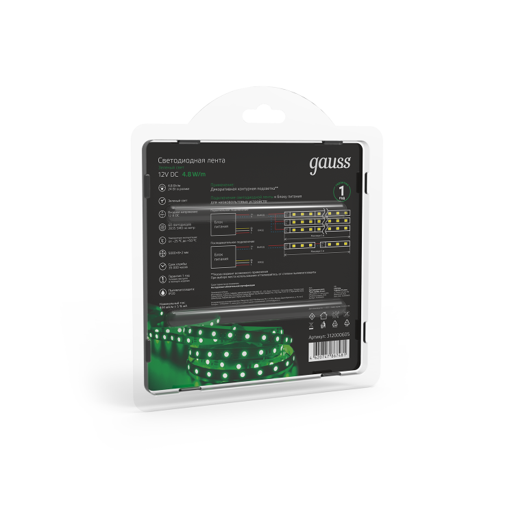 GAUSS Black прекрасный выбор для подсветки потолков, рабочих зон на кухне и витрин. Лента выпускается на гибкой печатной плате, а на обратной стороне используется двусторонний скотч, обеспечивающий надежное крепление ленты. В ассортименте присутствует лента теплого, холодного и RGB свечения со степенью защиты IP20 и IP66. Лента серии Black имеет увеличенный срок службы 35000 часов