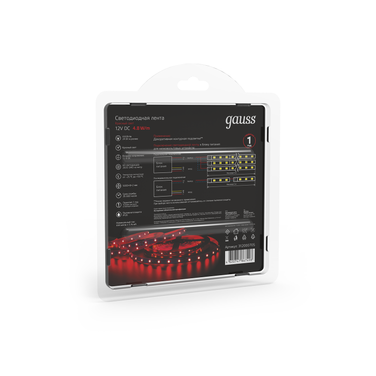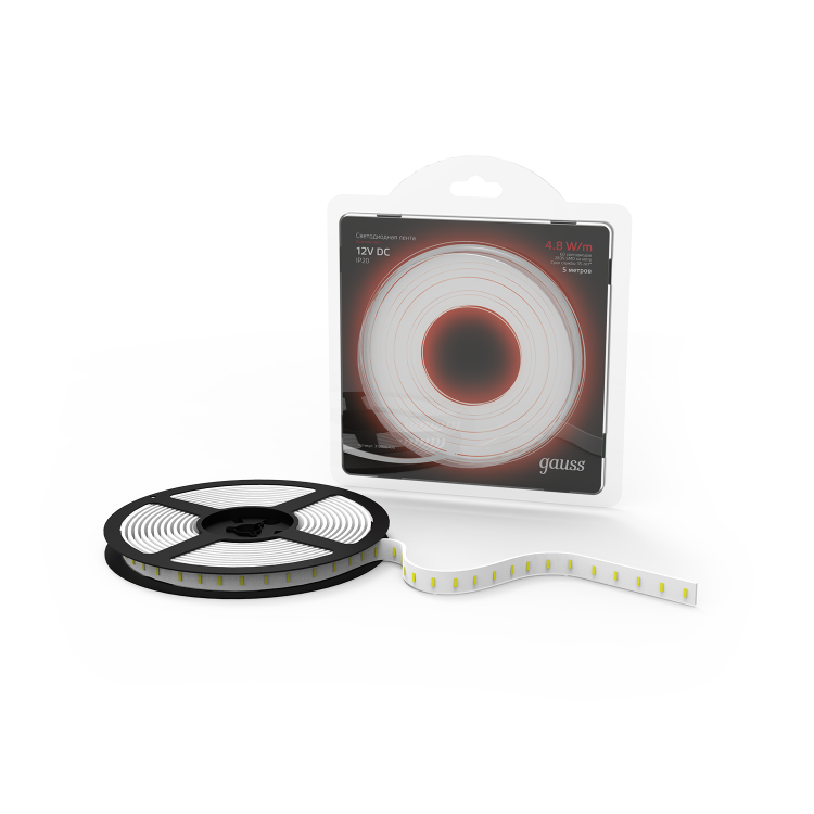 GAUSS Black прекрасный выбор для подсветки потолков, рабочих зон на кухне и витрин. Лента выпускается на гибкой печатной плате, а на обратной стороне используется двусторонний скотч, обеспечивающий надежное крепление ленты.