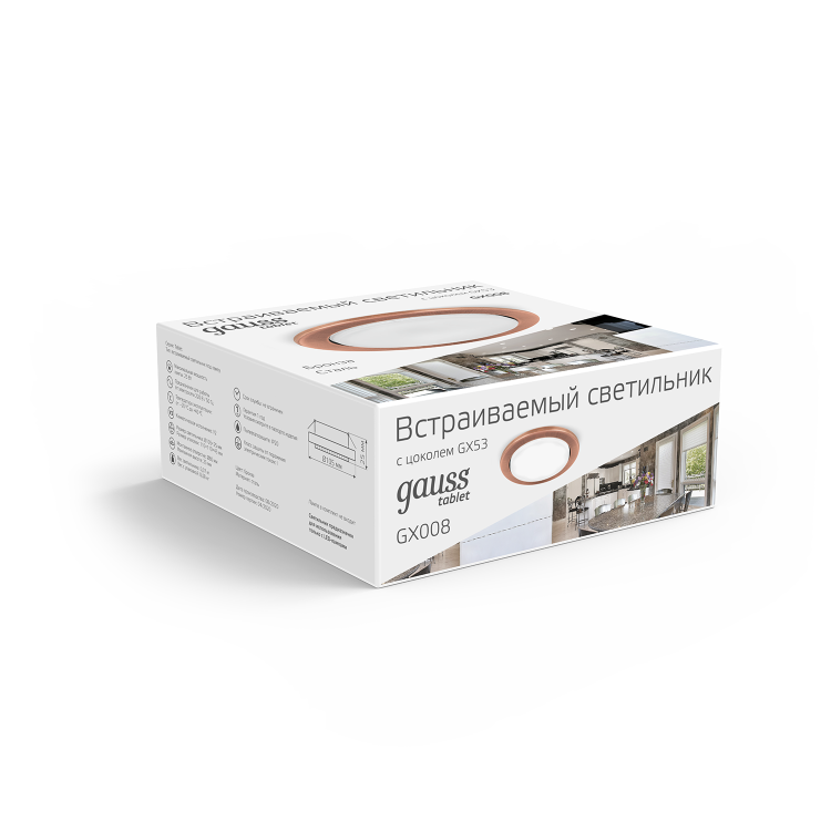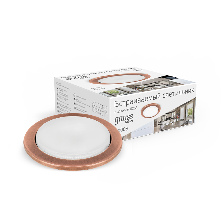 Светильник встраиваемый Gauss Tablet GX008 бронза с патроном для лампы GX53 подойдет для помещения с пылезащитой не превышающей IP20 и достаточно широким диапазоном рабочих температур от -20 до +40°С. Светильник можно использовать даже в очень небольшой комнате или прихожей с низкими потолками, так как у него маленькая монтажная глубина и компактный размер. Корпус светильника изготовлен из стали. Максимальная мощность лампы 25w. Может использоваться соло или в группе с центральной люстрой и/или без нее.